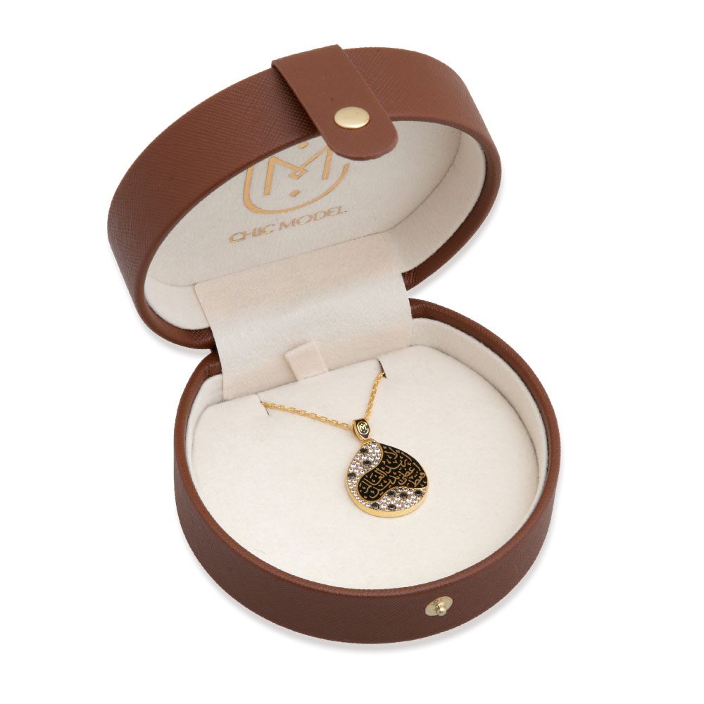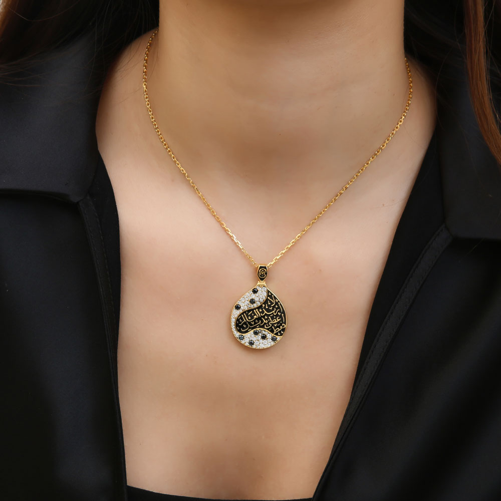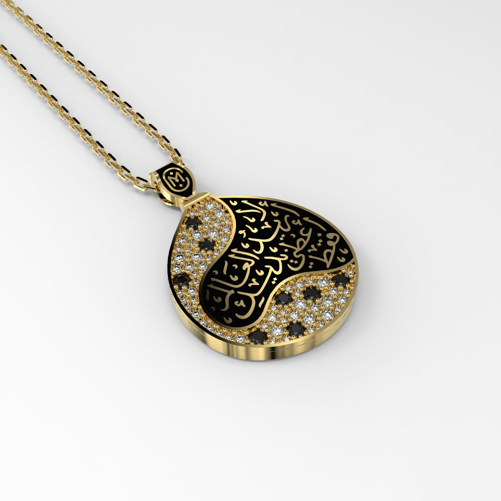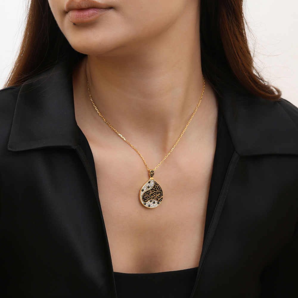 ما يميز قلاداتنا هو الشعر الصادق الذي يزين كل قطعة. هذه القصائد المكتوبة بالخط العربي الجميل، ليست مجرد كلمات، ولكنها همسات عاطفية، منقوشة بعناية للاحتفال بالحب والمشاعر الإنسانية. تحكي كل قلادة قصة، مما يجعلها هدية شخصية وعميقة لشخص مميز.