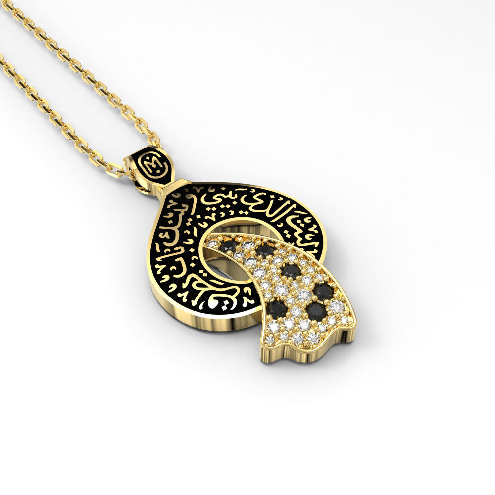 ما يميز قلاداتنا هو الشعر الصادق الذي يزين كل قطعة. هذه القصائد المكتوبة بالخط العربي الجميل، ليست مجرد كلمات، ولكنها همسات عاطفية، منقوشة بعناية للاحتفال بالحب والمشاعر الإنسانية. تحكي كل قلادة قصة، مما يجعلها هدية شخصية وعميقة لشخص مميز.