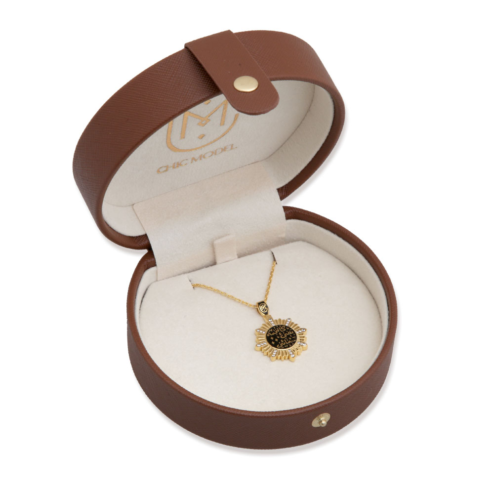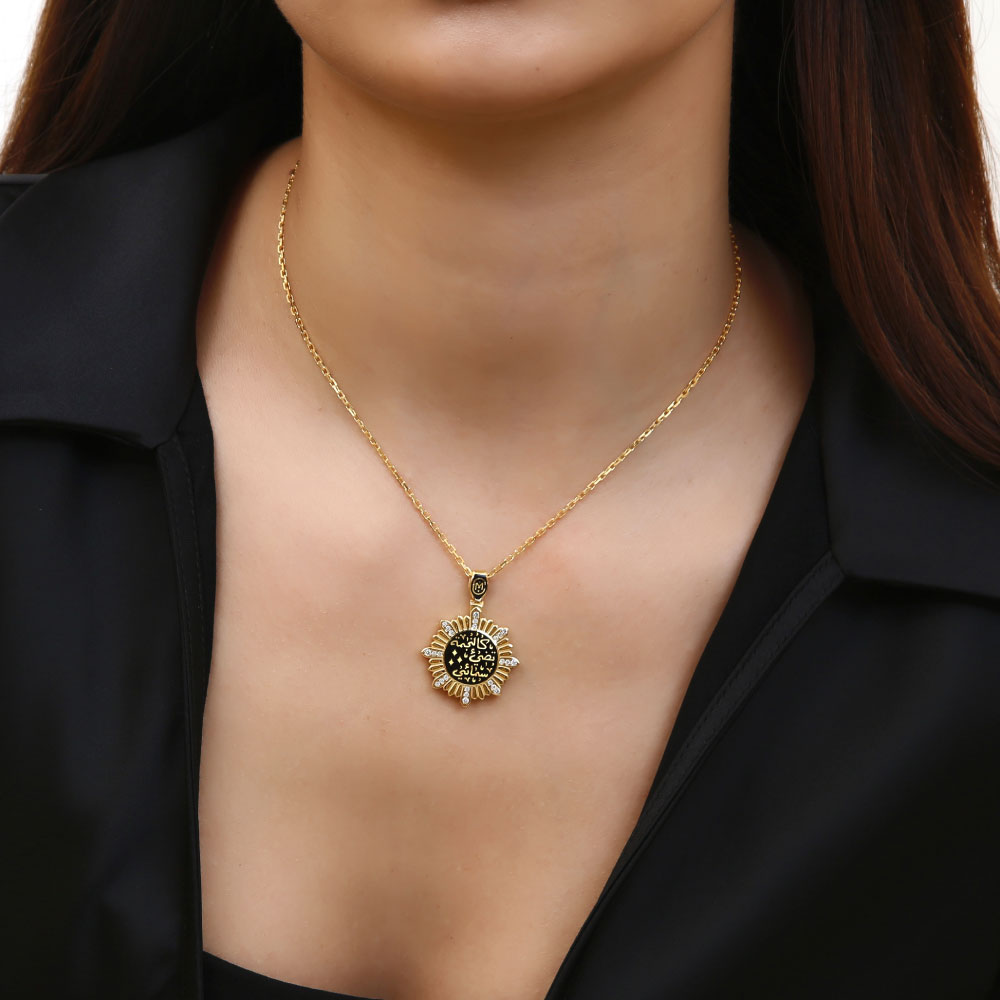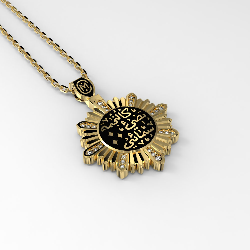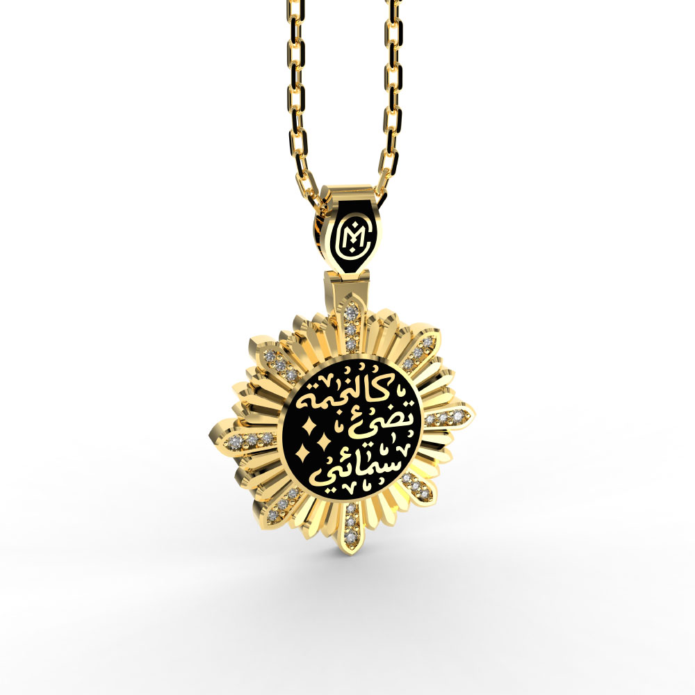 ما يميز قلاداتنا هو الشعر الصادق الذي يزين كل قطعة. هذه القصائد المكتوبة بالخط العربي الجميل، ليست مجرد كلمات، ولكنها همسات عاطفية، منقوشة بعناية للاحتفال بالحب والمشاعر الإنسانية. تحكي كل قلادة قصة، مما يجعلها هدية شخصية وعميقة لشخص مميز.