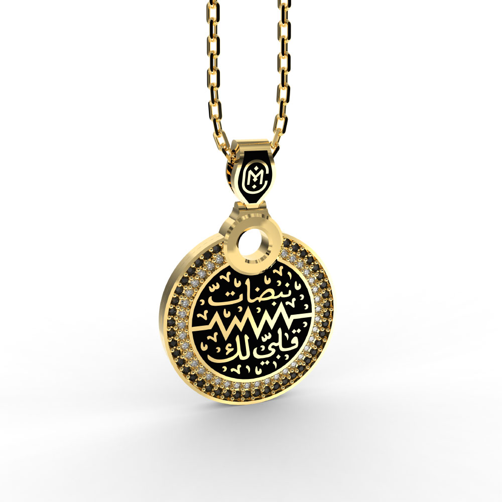 ما يميز قلاداتنا هو الشعر الصادق الذي يزين كل قطعة. هذه القصائد المكتوبة بالخط العربي الجميل، ليست مجرد كلمات، ولكنها همسات عاطفية، منقوشة بعناية للاحتفال بالحب والمشاعر الإنسانية. تحكي كل قلادة قصة، مما يجعلها هدية شخصية وعميقة لشخص مميز.