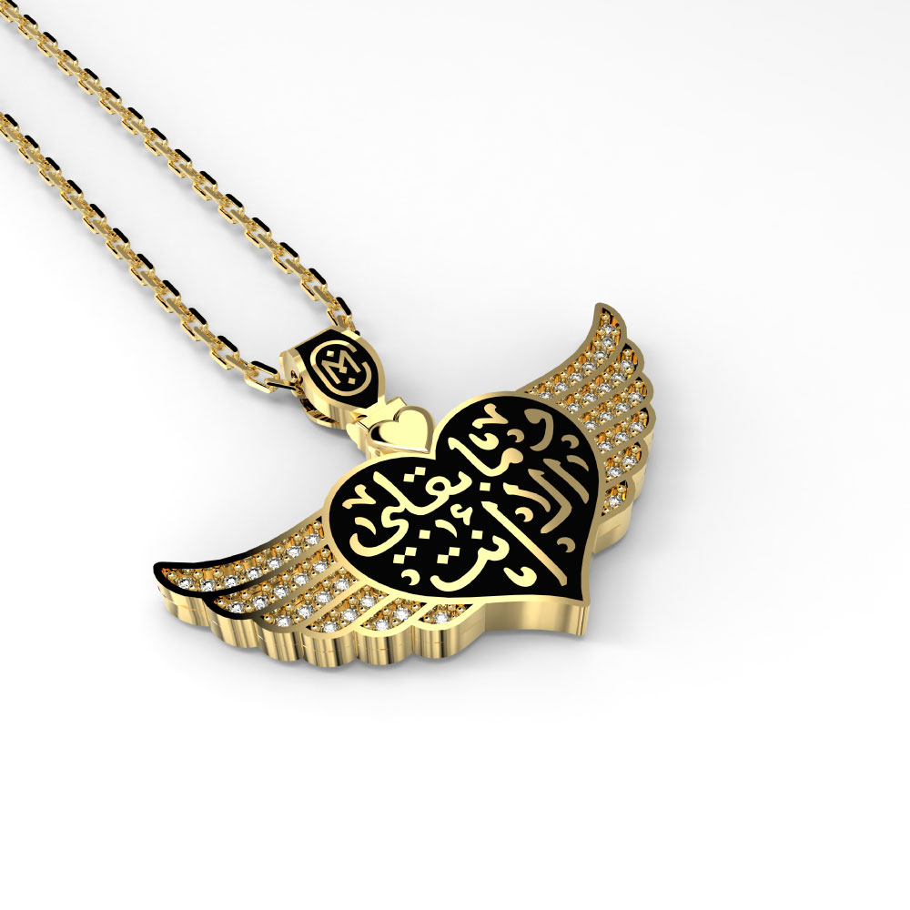 ما يميز قلاداتنا هو الشعر الصادق الذي يزين كل قطعة. هذه القصائد المكتوبة بالخط العربي الجميل، ليست مجرد كلمات، ولكنها همسات عاطفية، منقوشة بعناية للاحتفال بالحب والمشاعر الإنسانية. تحكي كل قلادة قصة، مما يجعلها هدية شخصية وعميقة لشخص مميز.