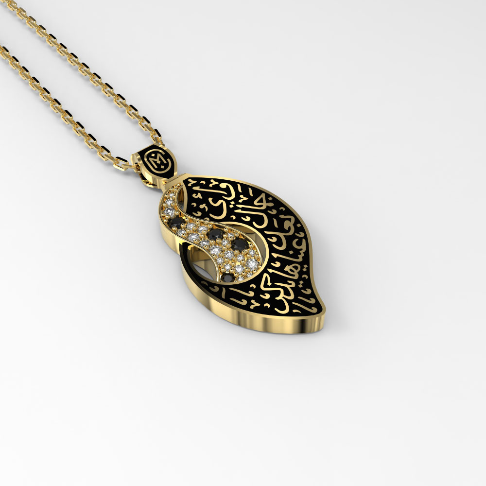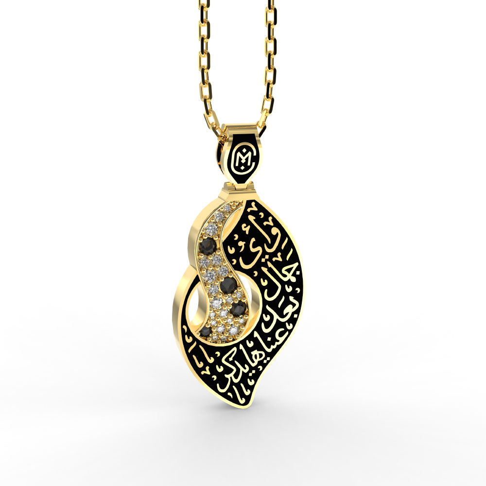 ما يميز قلاداتنا هو الشعر الصادق الذي يزين كل قطعة. هذه القصائد المكتوبة بالخط العربي الجميل، ليست مجرد كلمات، ولكنها همسات عاطفية، منقوشة بعناية للاحتفال بالحب والمشاعر الإنسانية. تحكي كل قلادة قصة، مما يجعلها هدية شخصية وعميقة لشخص مميز.