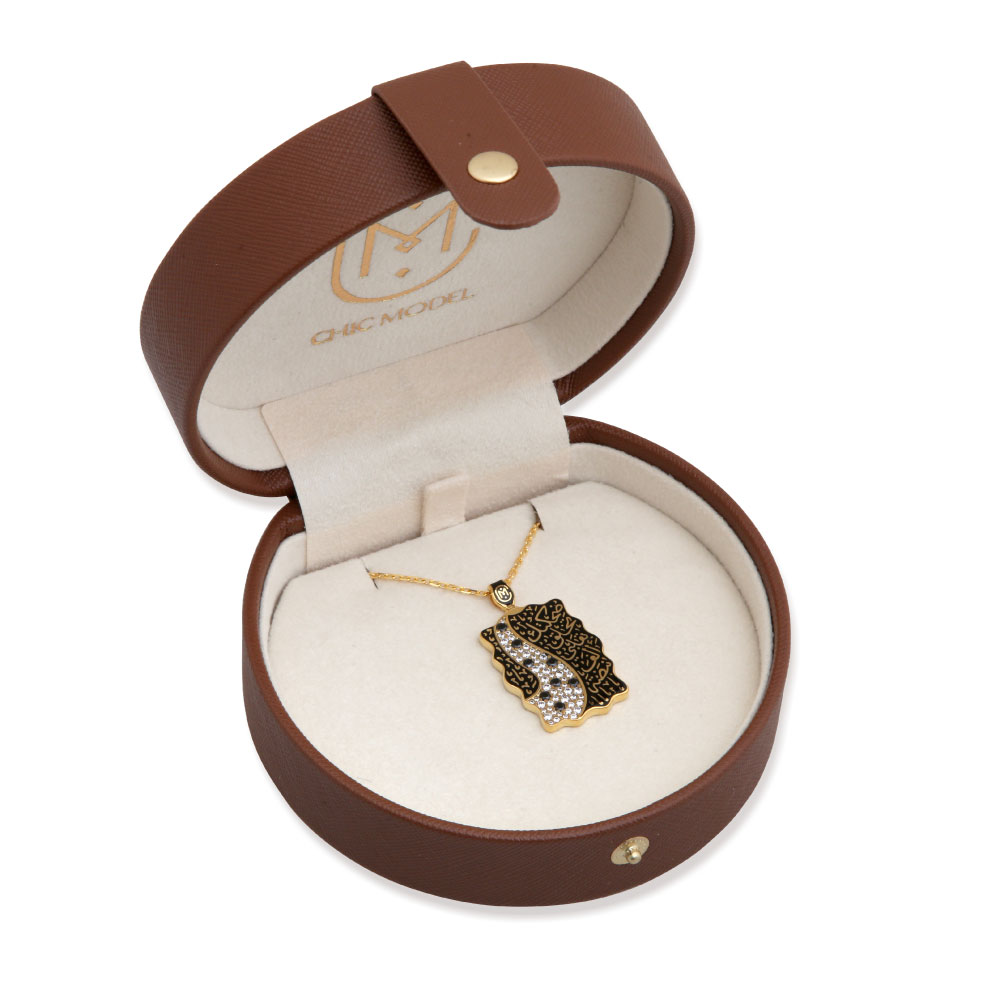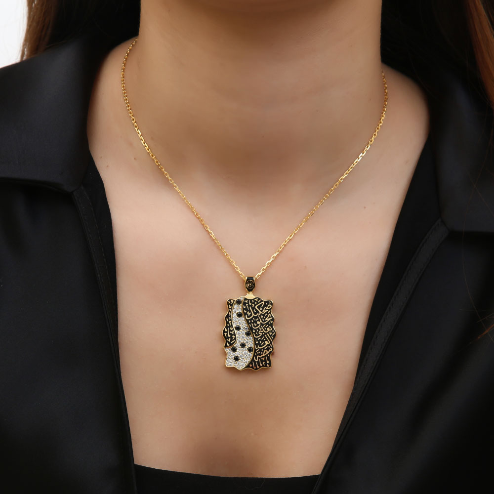 ما يميز قلاداتنا هو الشعر الصادق الذي يزين كل قطعة. هذه القصائد المكتوبة بالخط العربي الجميل، ليست مجرد كلمات، ولكنها همسات عاطفية، منقوشة بعناية للاحتفال بالحب والمشاعر الإنسانية. تحكي كل قلادة قصة، مما يجعلها هدية شخصية وعميقة لشخص مميز.