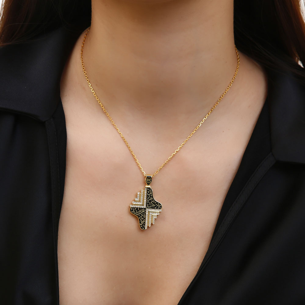 ما يميز قلاداتنا هو الشعر الصادق الذي يزين كل قطعة. هذه القصائد المكتوبة بالخط العربي الجميل، ليست مجرد كلمات، ولكنها همسات عاطفية، منقوشة بعناية للاحتفال بالحب والمشاعر الإنسانية. تحكي كل قلادة قصة، مما يجعلها هدية شخصية وعميقة لشخص مميز.