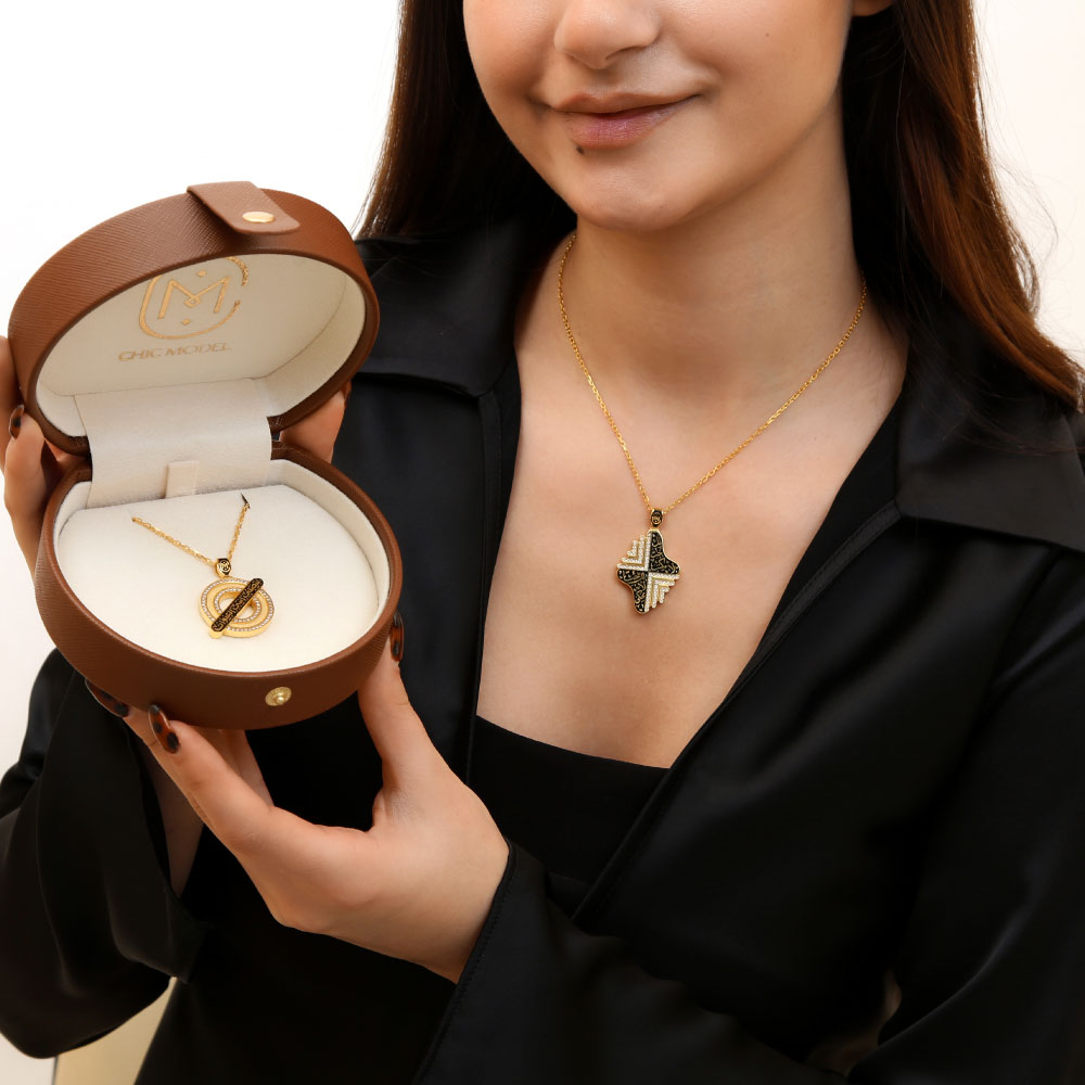 اللون الكلاسيكي والخالد، يتناغم مع دفء المجوهرات الذهبية التقليدية.