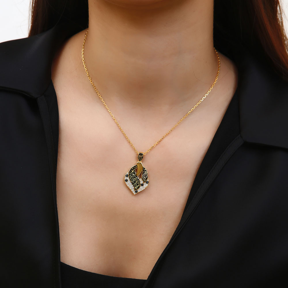 ما يميز قلاداتنا هو الشعر الصادق الذي يزين كل قطعة. هذه القصائد المكتوبة بالخط العربي الجميل، ليست مجرد كلمات، ولكنها همسات عاطفية، منقوشة بعناية للاحتفال بالحب والمشاعر الإنسانية. تحكي كل قلادة قصة، مما يجعلها هدية شخصية وعميقة لشخص مميز.